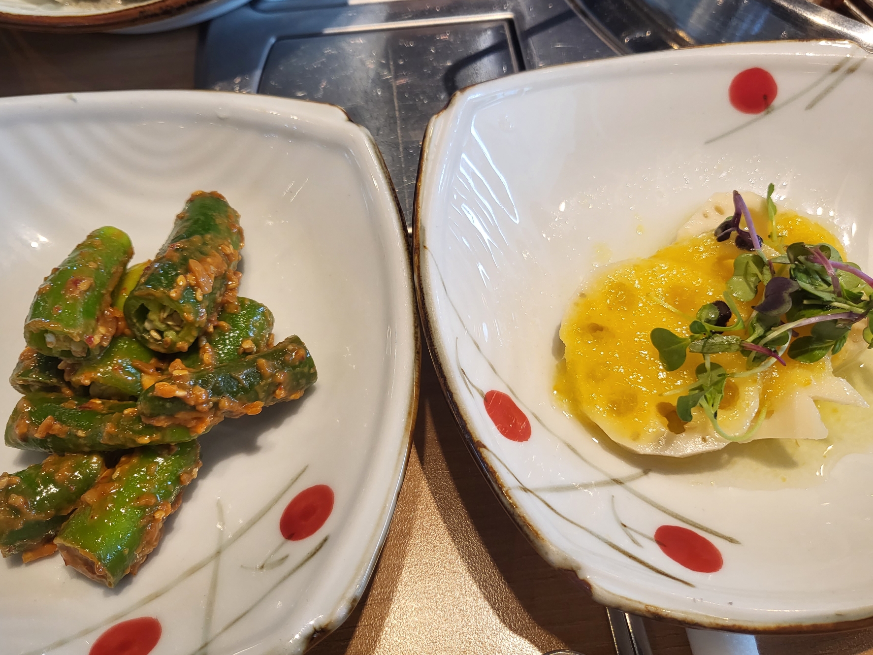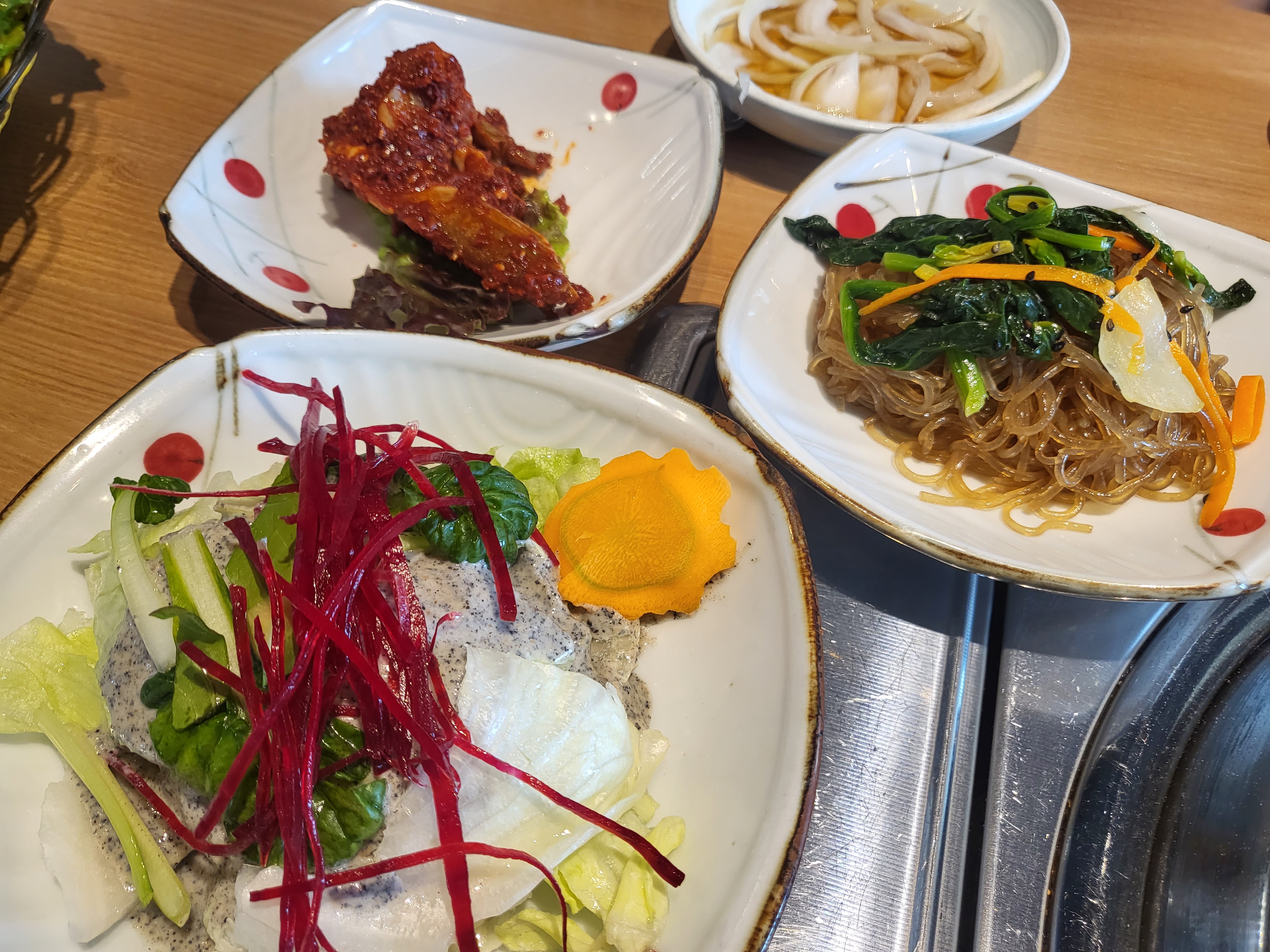 흑임자(?) 샐러드, 양념게장, 잡채