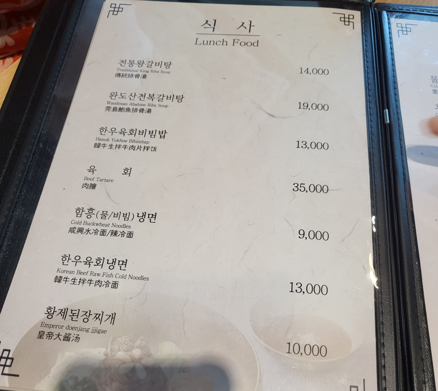 갈비탕, 비빔밥, 육회, 냉면, 찌개