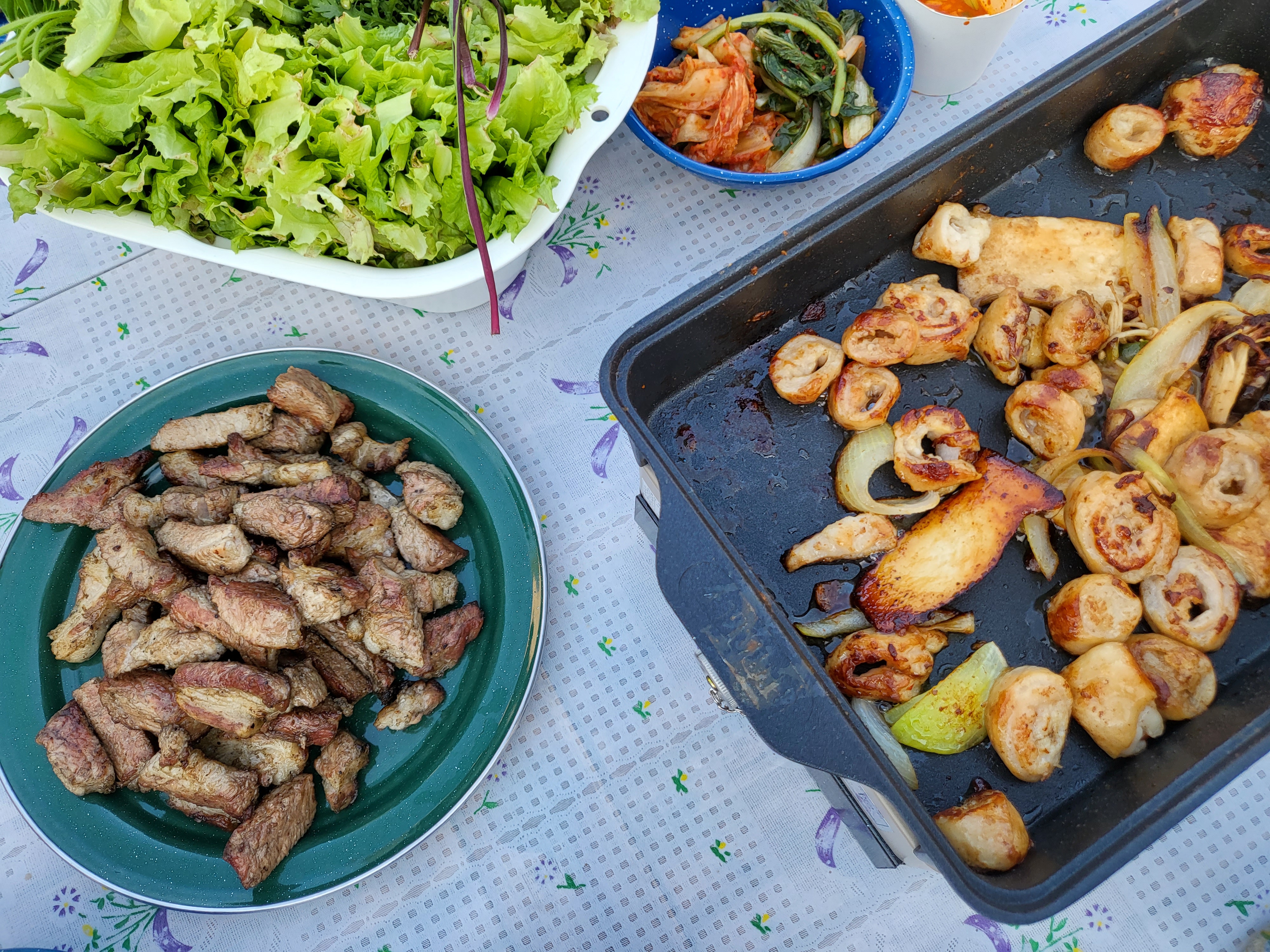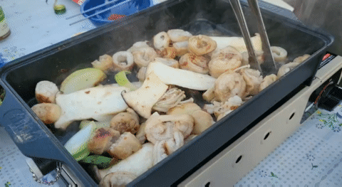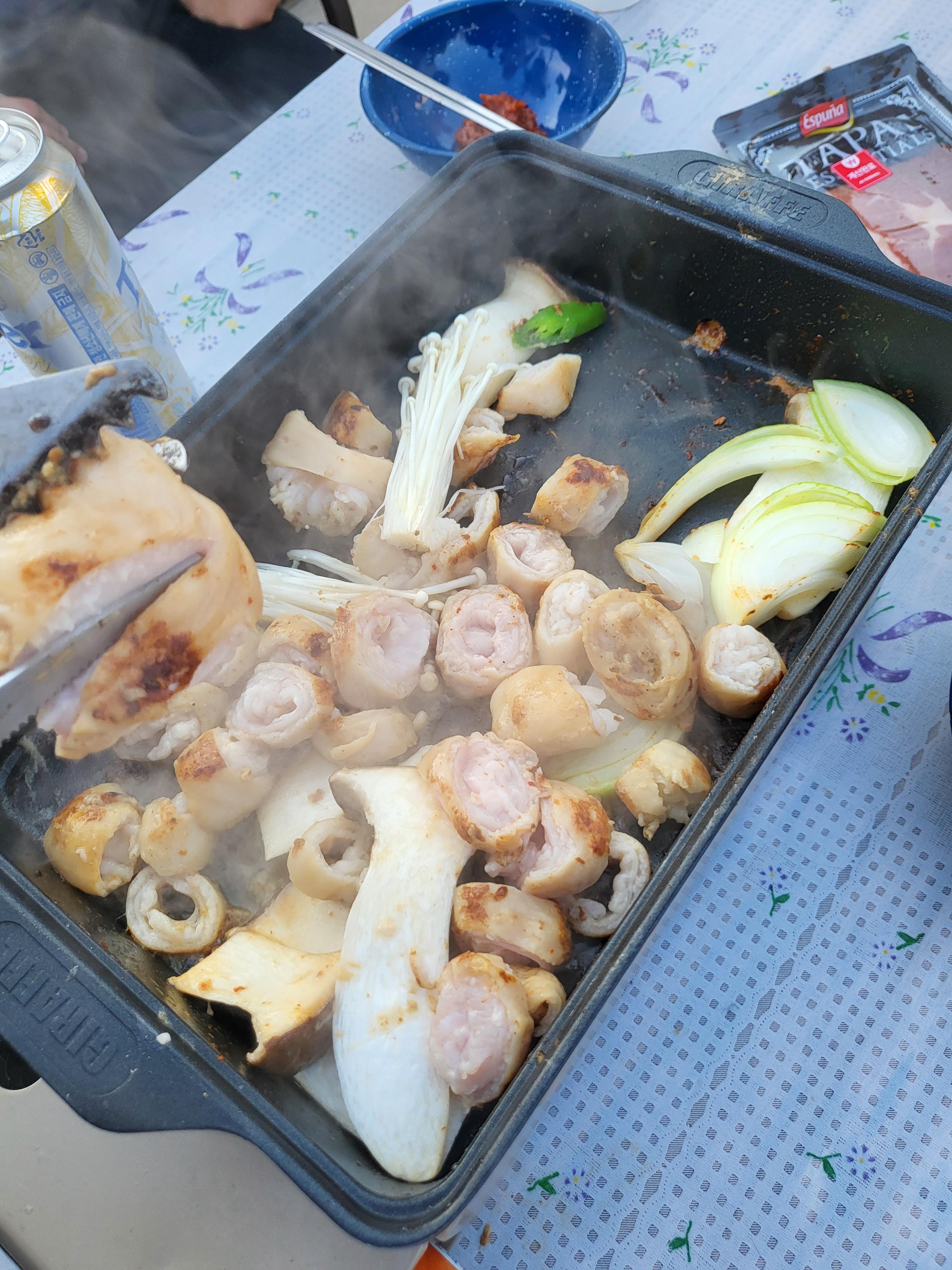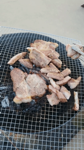 짐 풀고 바로 고기 굽고~~